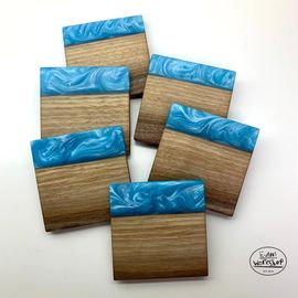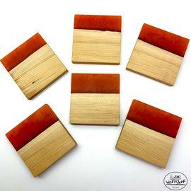 Live edge maple coasters with red epoxy