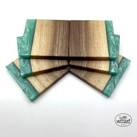 Live edge walnut coasters with jade green epoxy