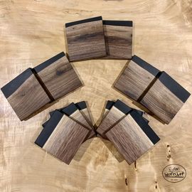 Live edge walnut coasters with black epoxy
