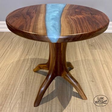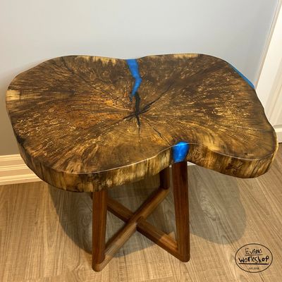 One of a kind side/end table, made with Canadian black walnut and epoxy