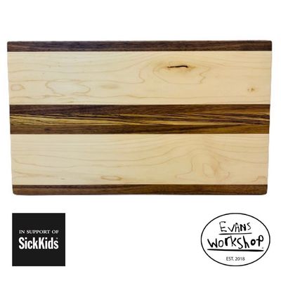 To kick off the summer, I made a cutting/serving board made with walnut, maple and zebra woods. It's also beveled on the bottom so that it can be lifted easily and adds a little flare.